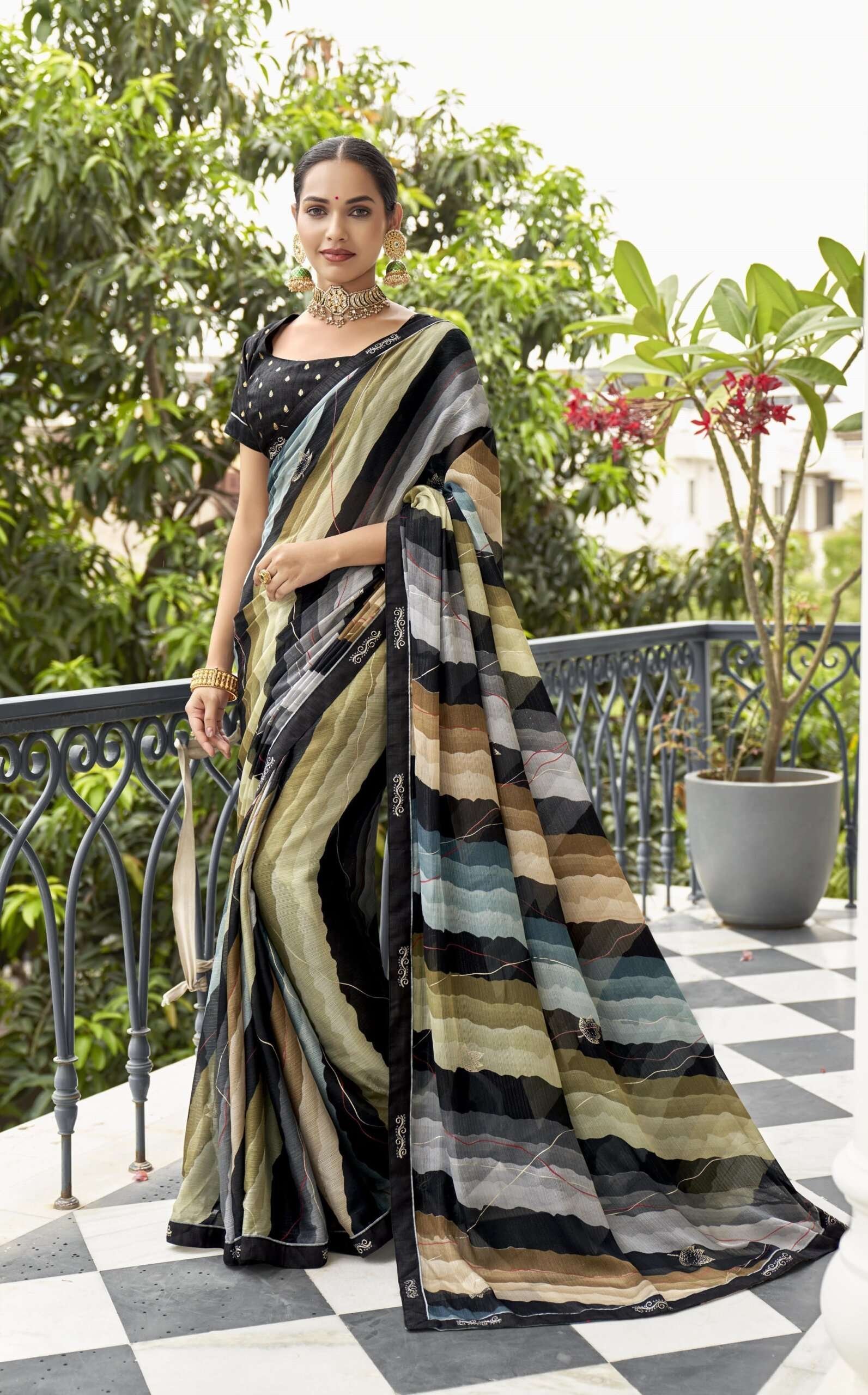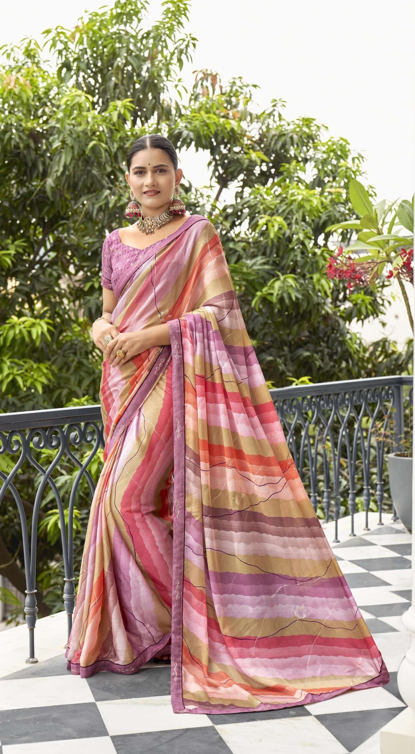 Printed Sarees: Agarwal Creation offers printed sarees with contemporary and traditional prints to reach a larger audience. These range from floral to geometric, paisley to abstract. It can be picked according to the mood of the person or event.