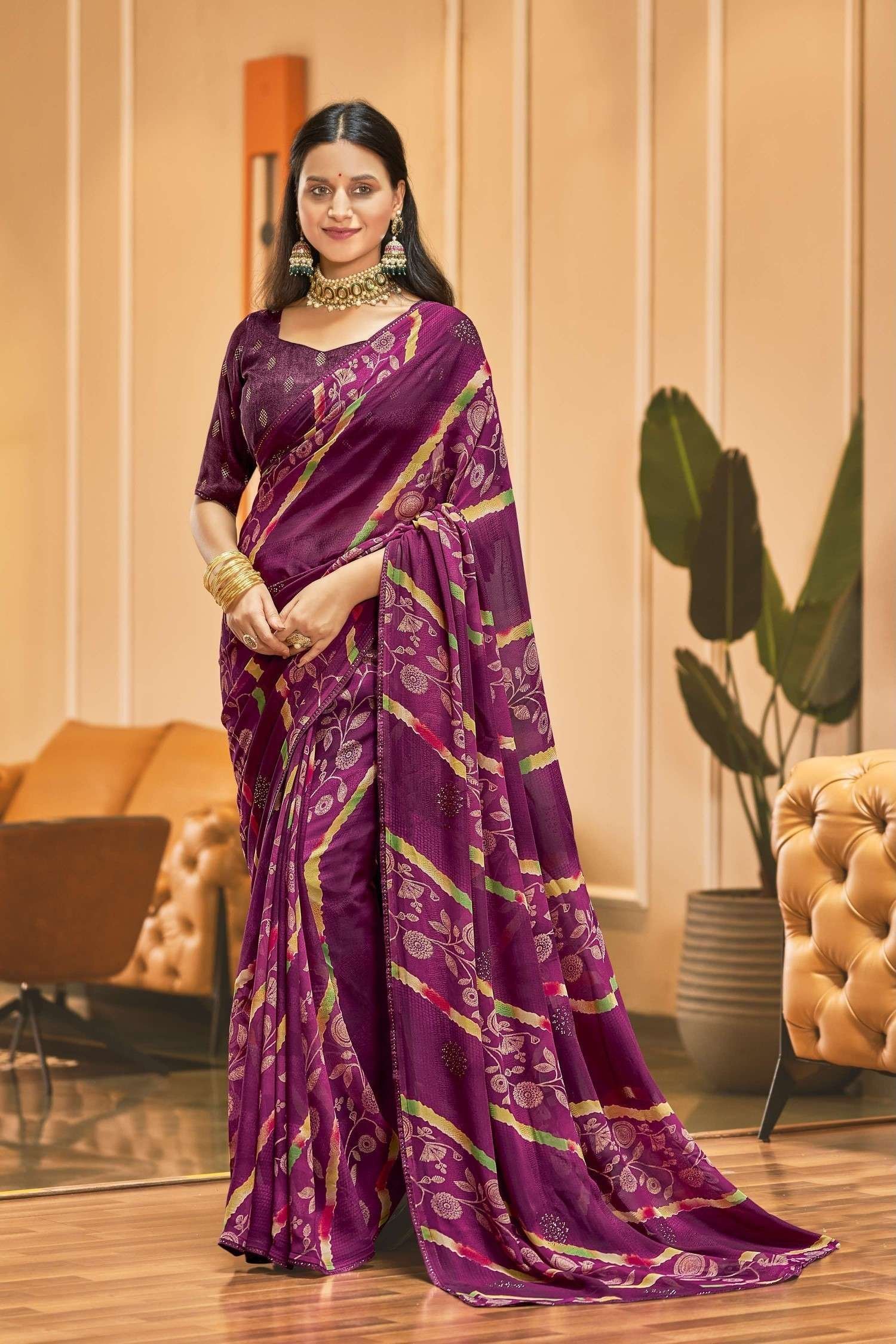 Printed Sarees: Agarwal Creation offers printed sarees with contemporary and traditional prints to reach a larger audience. These range from floral to geometric, paisley to abstract. It can be picked according to the mood of the person or event.