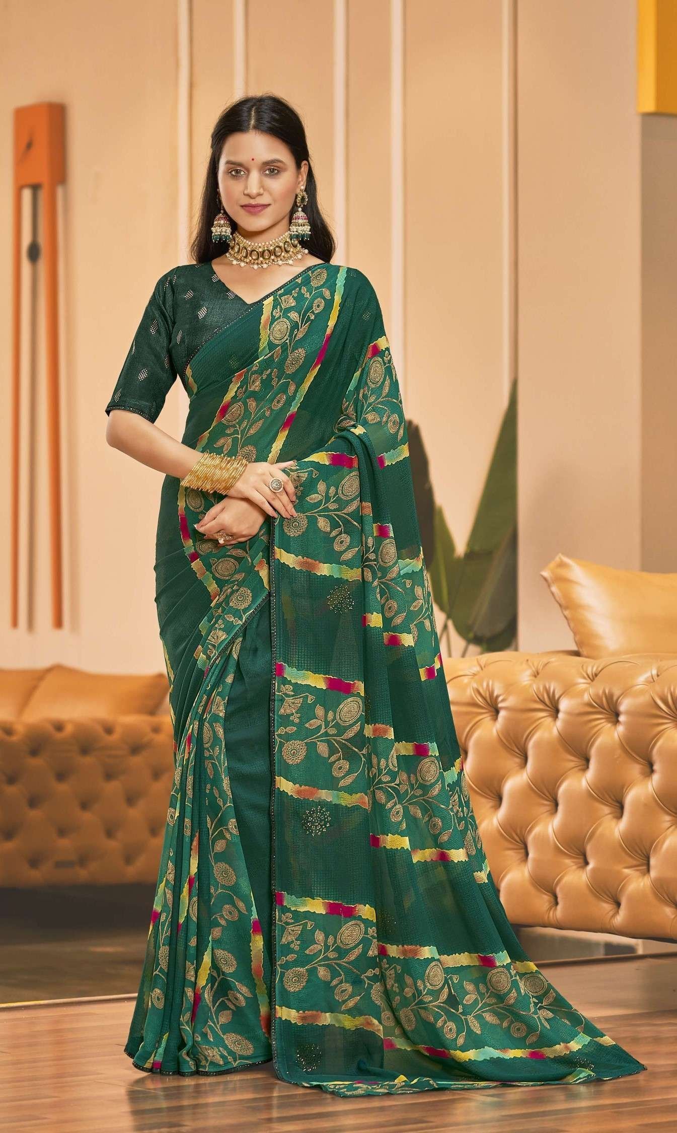 The manufacturing processes of the company are deeply rooted in traditional craftsmanship combined with modern technology. This fusion enables Agarwal Creation to create sarees that are not only beautiful but also comfortable and long-lasting. The company’s fabric selection is varied, ranging from the most luxurious silks to delicate chiffons and georgettes, offering customers a wide range of options to choose from for every occasion.