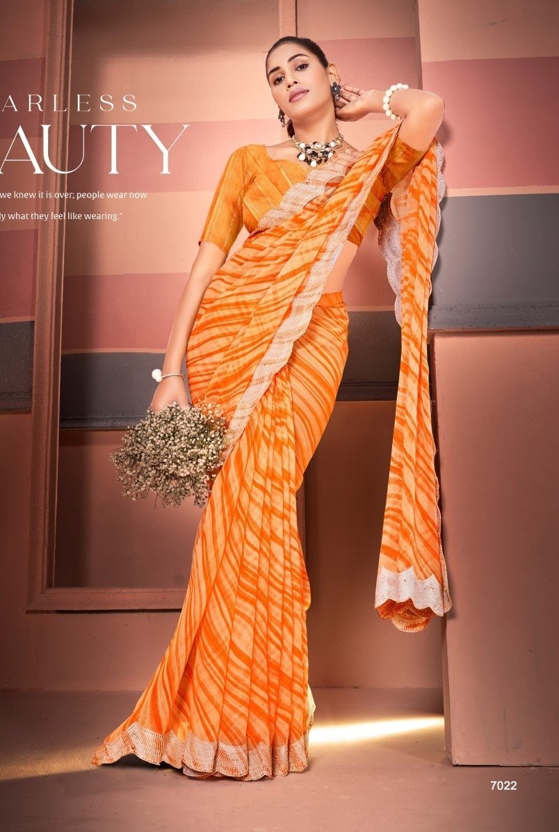 Printed Sarees: Agarwal Creation offers printed sarees with contemporary and traditional prints to reach a larger audience. These range from floral to geometric, paisley to abstract. It can be picked according to the mood of the person or event.