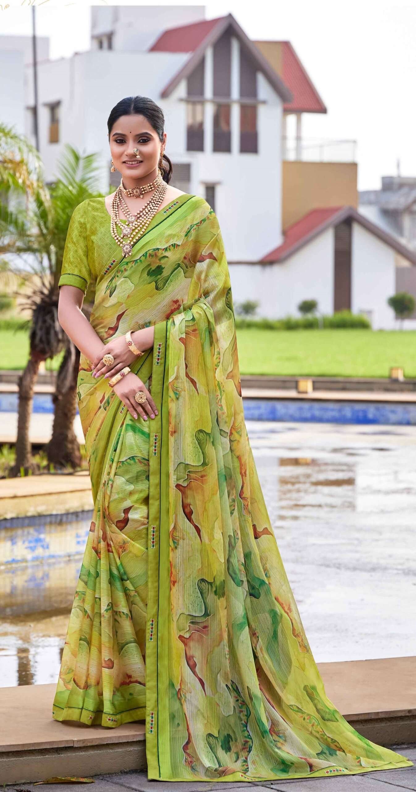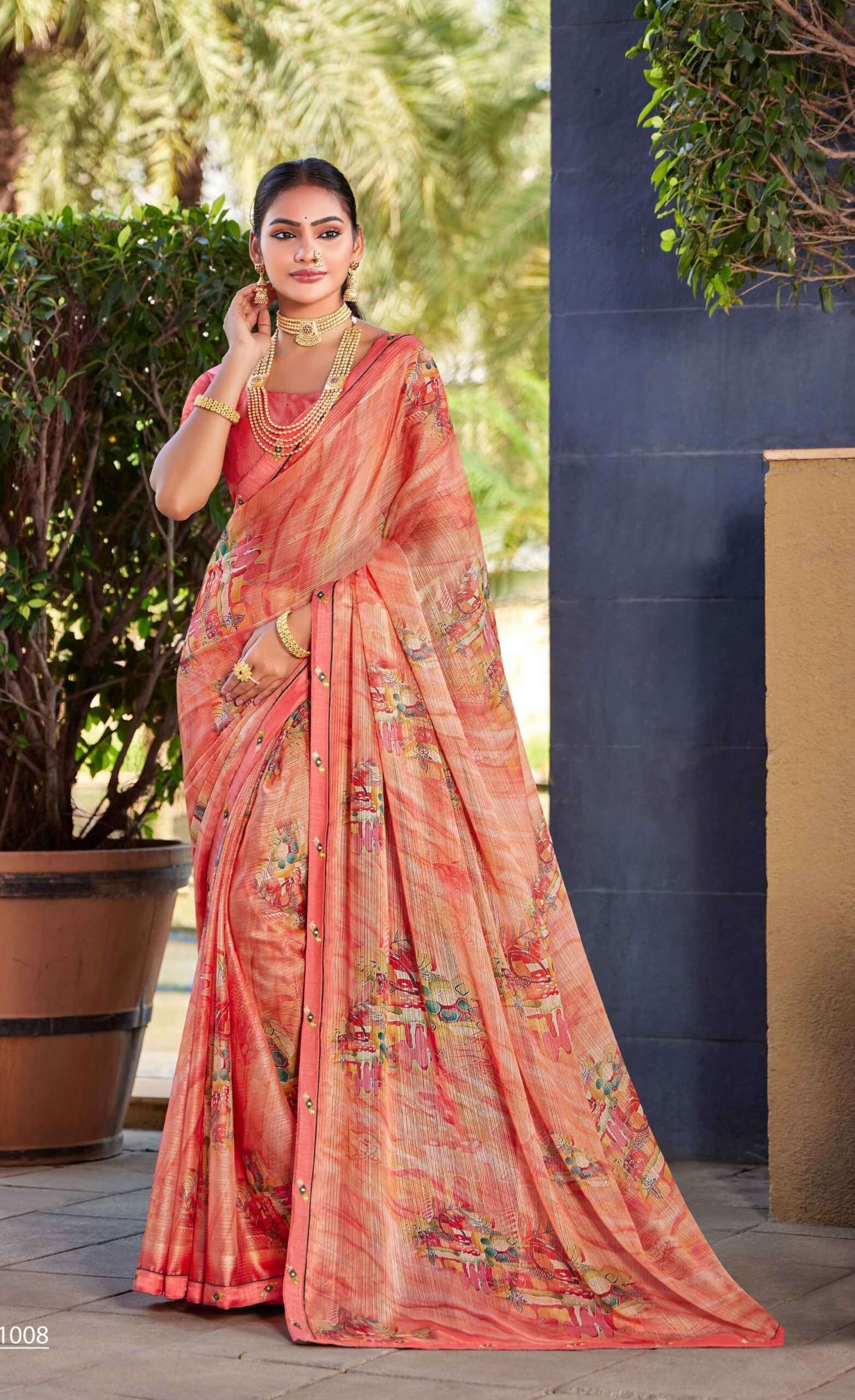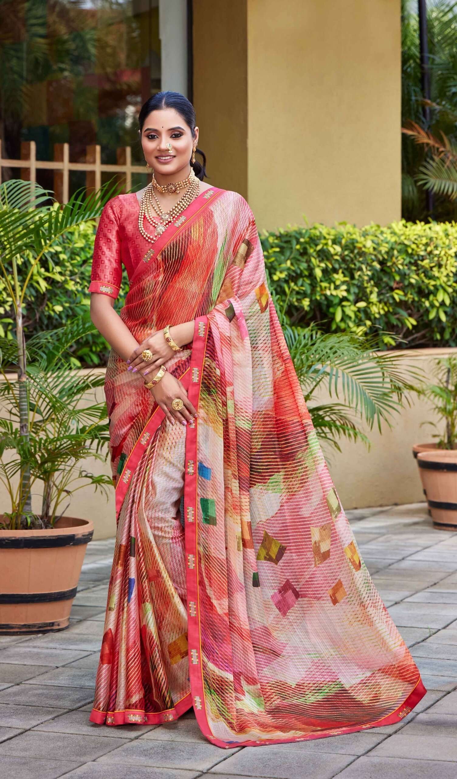 Printed Sarees: Agarwal Creation offers printed sarees with contemporary and traditional prints to reach a larger audience. These range from floral to geometric, paisley to abstract. It can be picked according to the mood of the person or event.