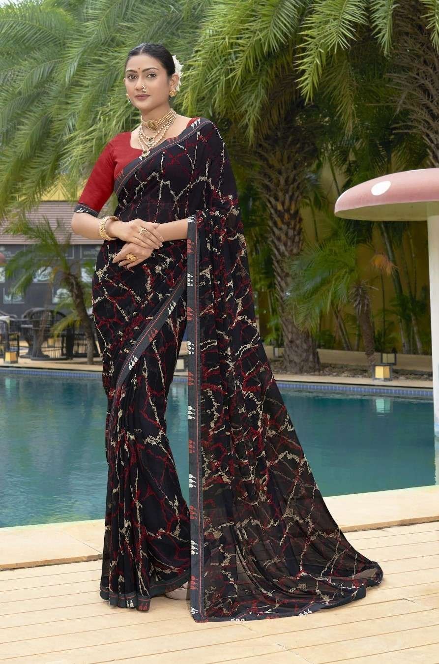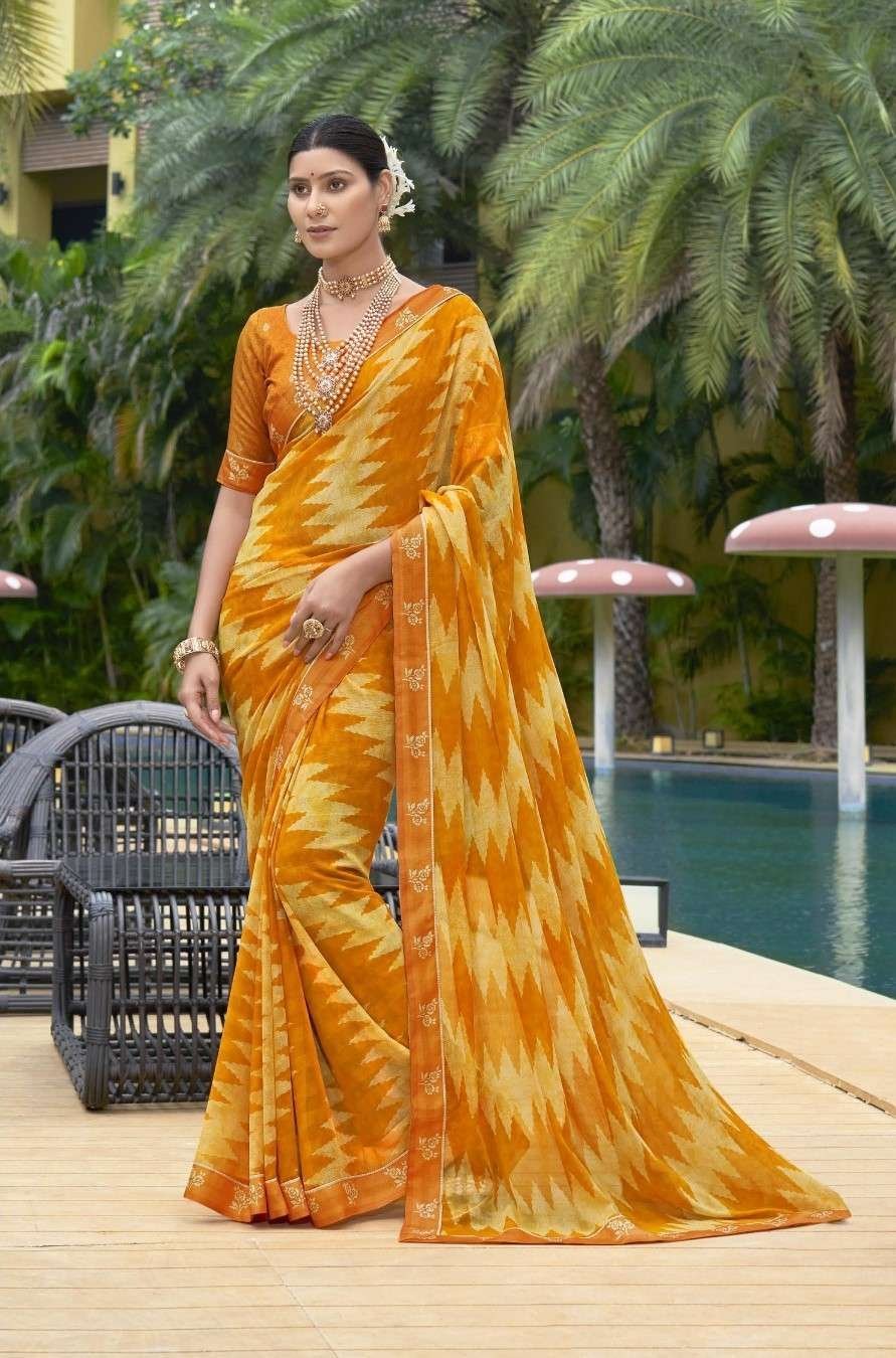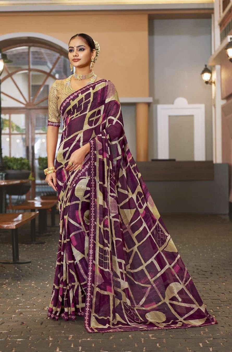 Printed Sarees: Agarwal Creation offers printed sarees with contemporary and traditional prints to reach a larger audience. These range from floral to geometric, paisley to abstract. It can be picked according to the mood of the person or event.