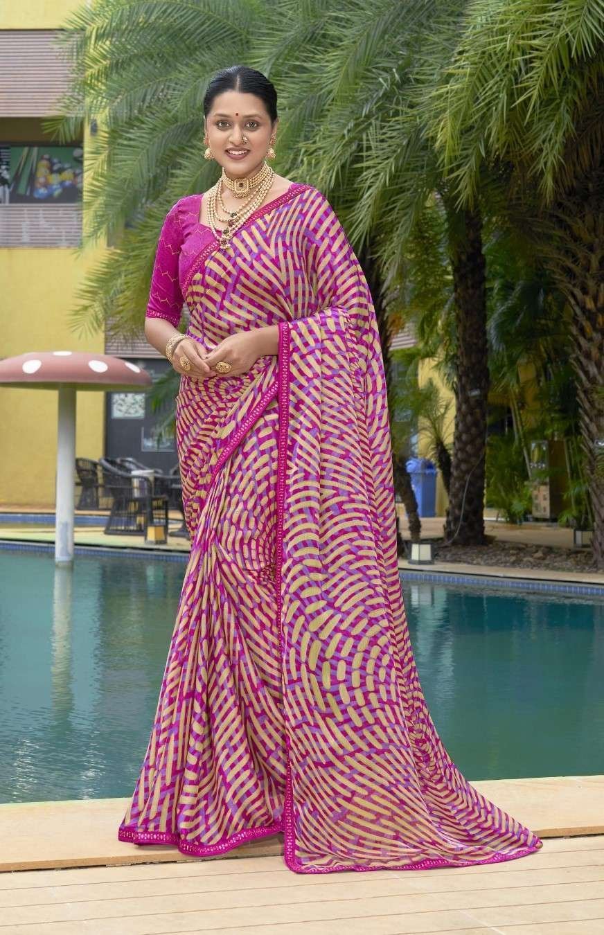 FABRIC Beautiful Georgette Saree With Simple Lace Border