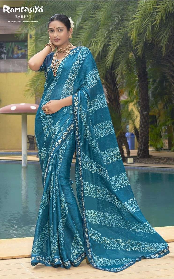 The saree has fine craftsmanship, providing a smooth drape and a comfortable fit. The Ramrasiya Mangalmay Saree 1 reflects a harmonious fusion of tradition and contemporary design, creating a versatile piece that can be styled for various events. Whether paired with traditional jewelry for a classic look or modern accessories for a contemporary touch, this saree is sure to turn heads.