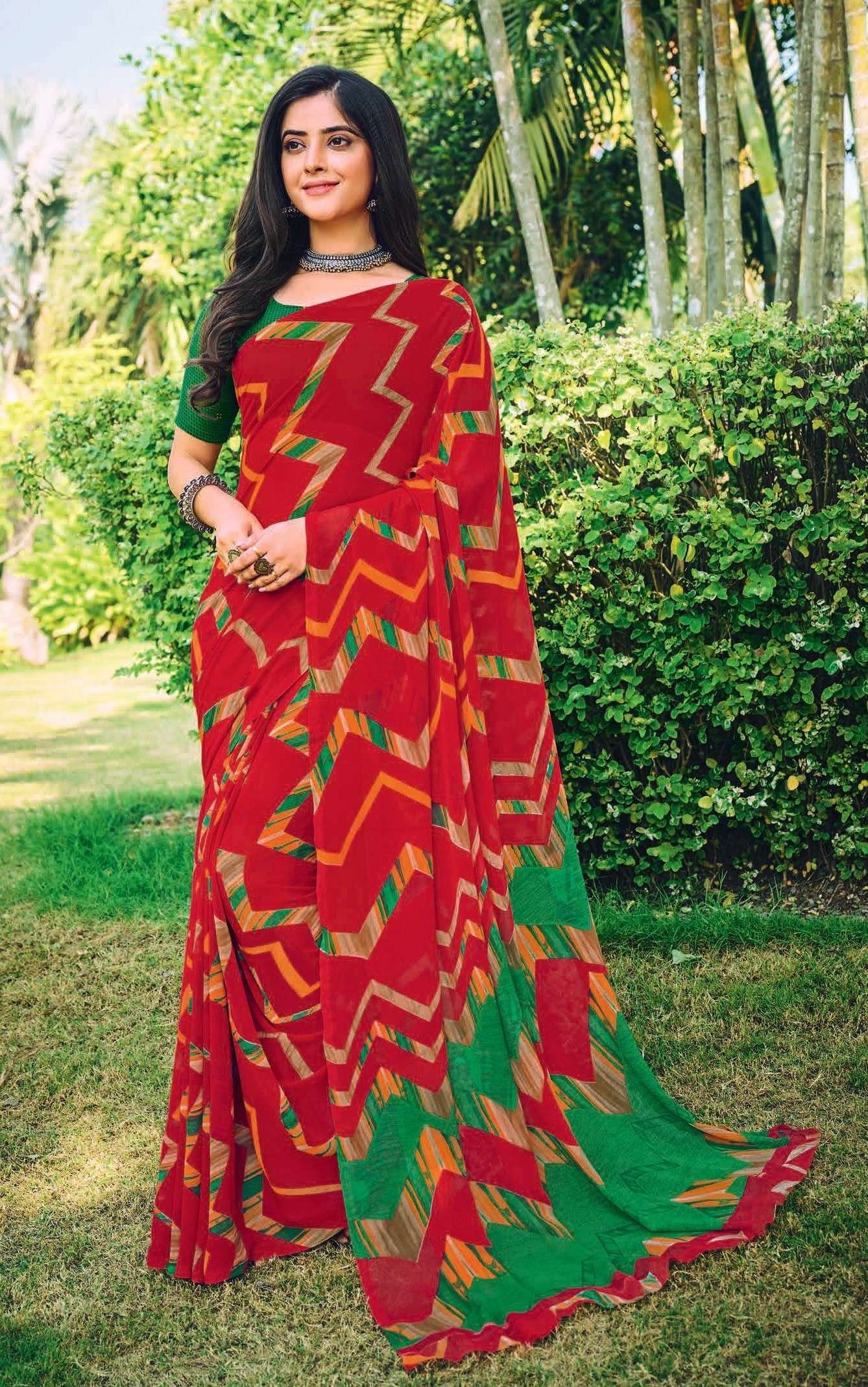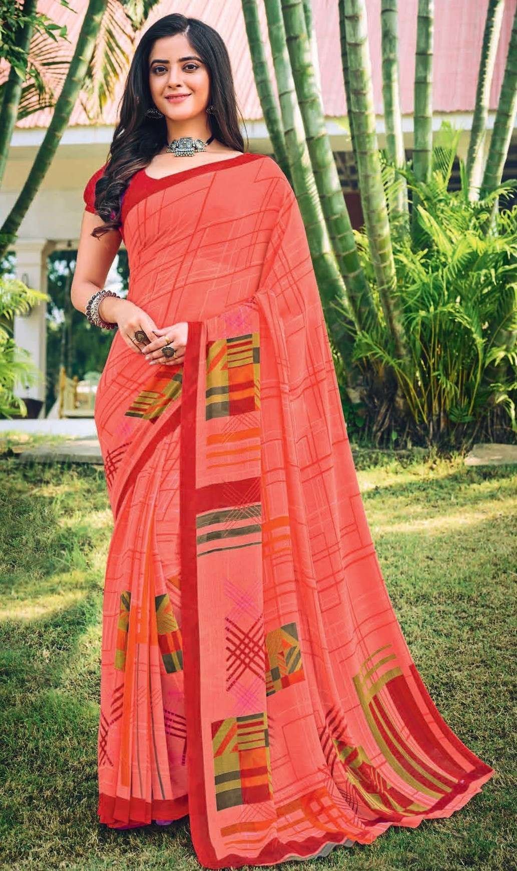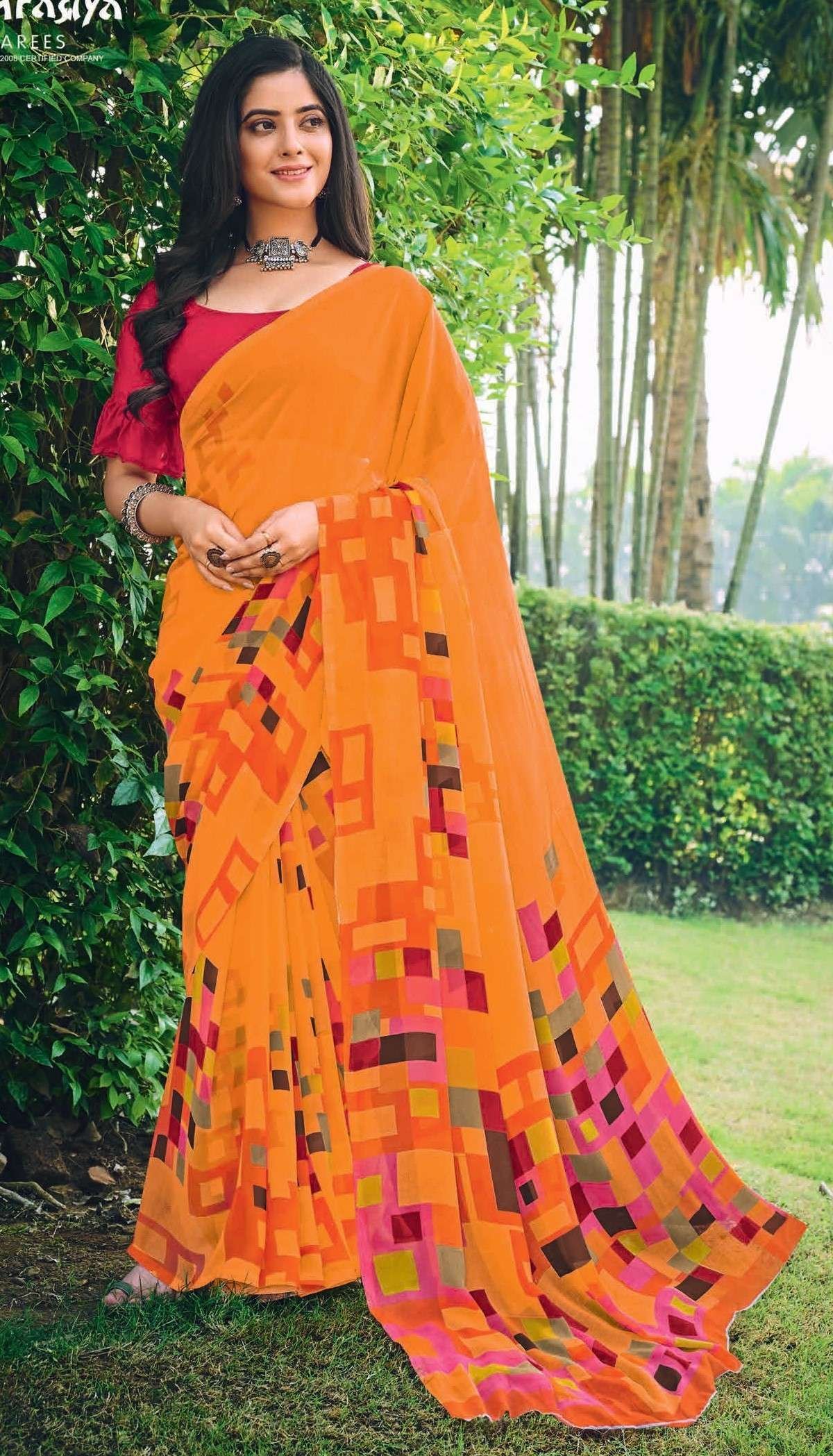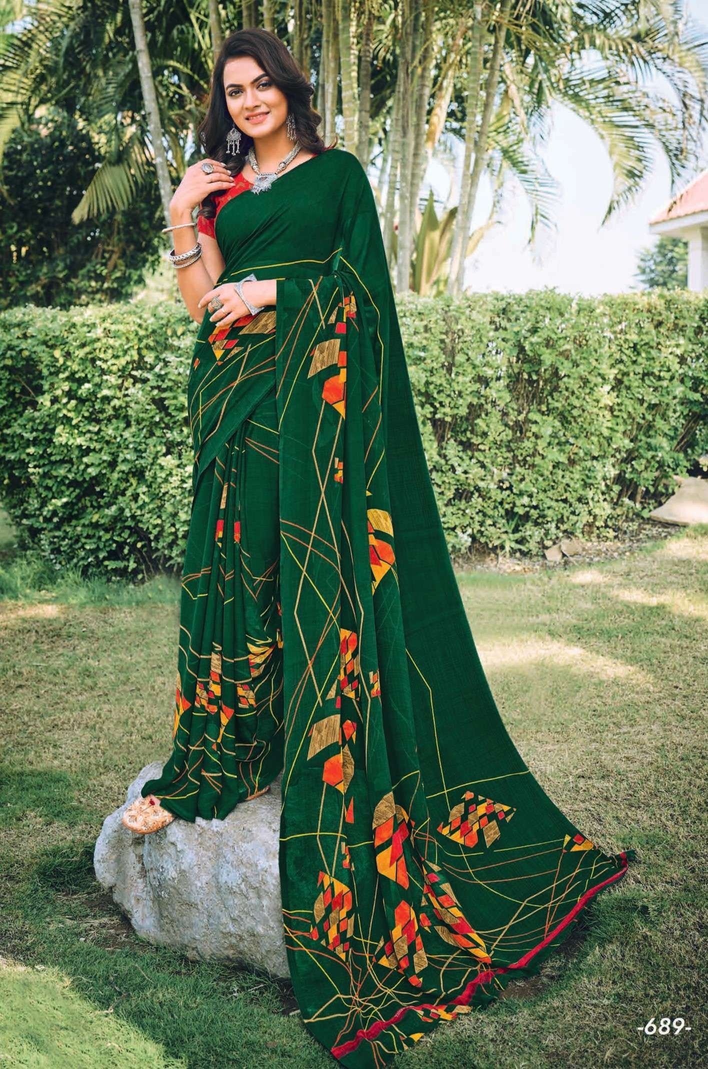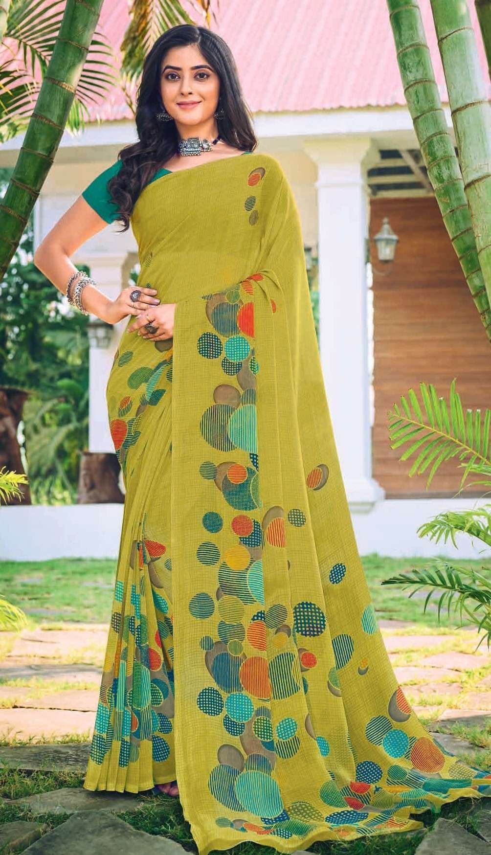 Printed Sarees: Agarwal Creation offers printed sarees with contemporary and traditional prints to reach a larger audience. These range from floral to geometric, paisley to abstract. It can be picked according to the mood of the person or event.