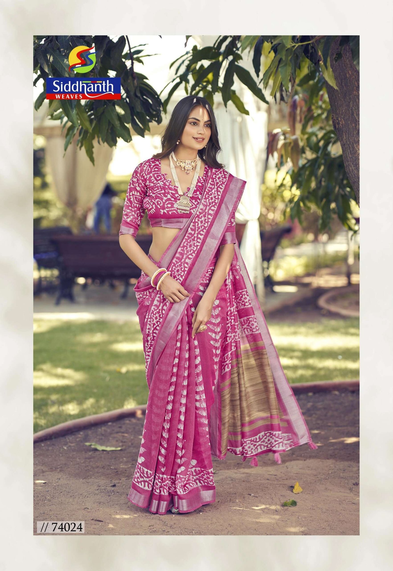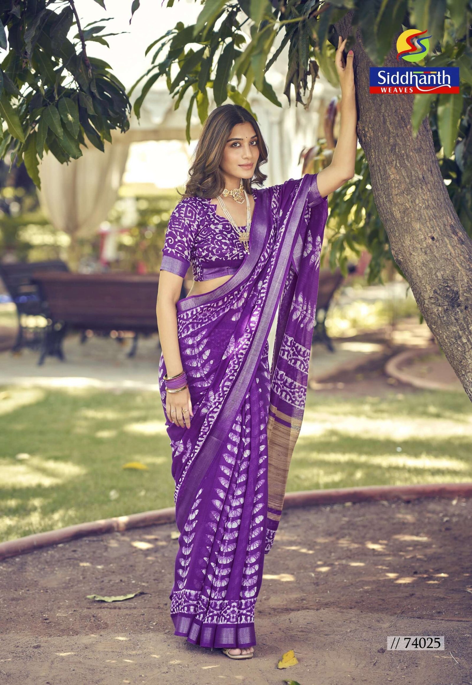 Printed Sarees: Agarwal Creation offers printed sarees with contemporary and traditional prints to reach a larger audience. These range from floral to geometric, paisley to abstract. It can be picked according to the mood of the person or event.
