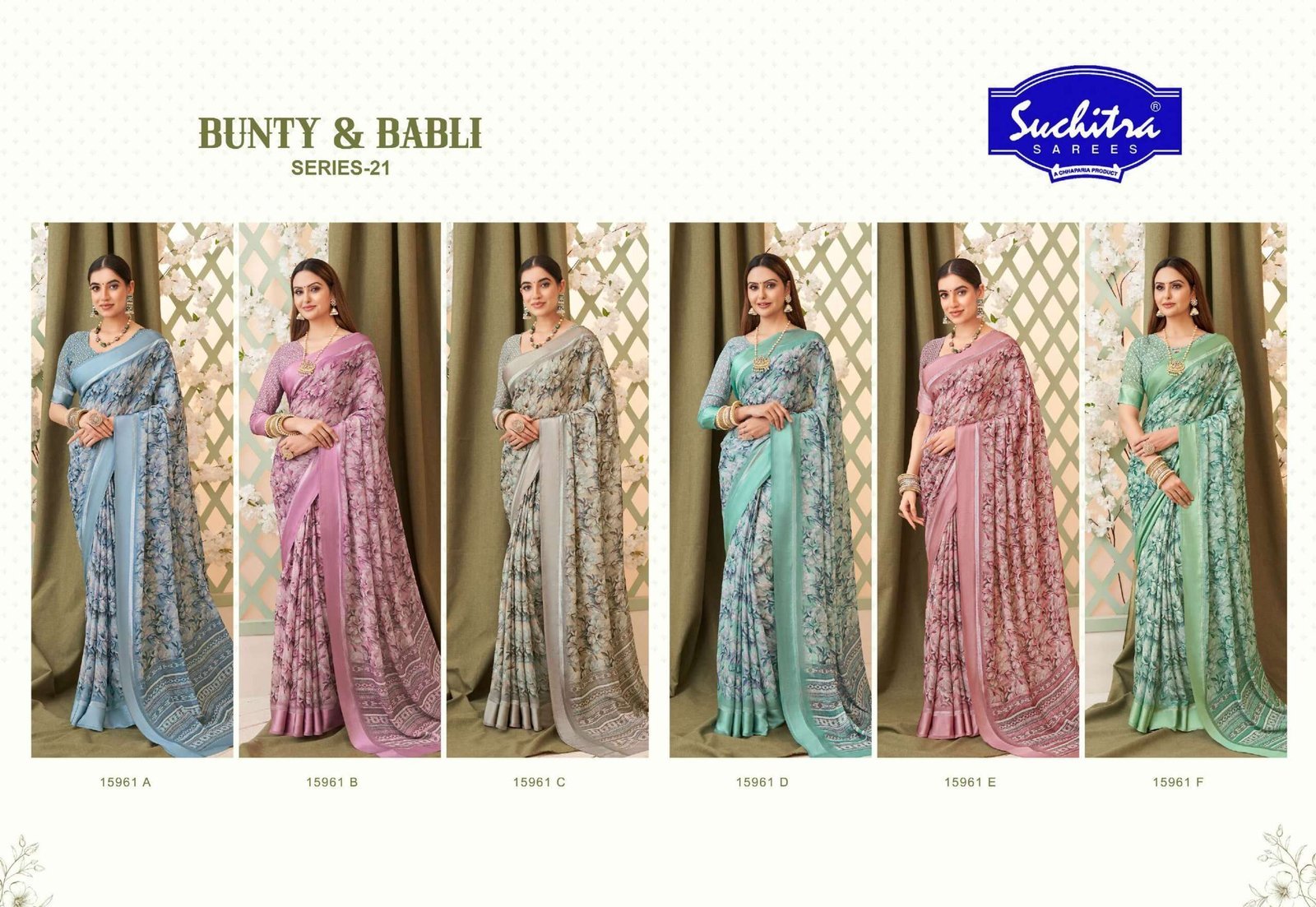 Suchitra Bunty and Bubli 21 Saree is one of the most remarkable pieces in our collection. It is a saree that represents the perfect fusion of traditional charm and modern elegance, making it a must-have for weddings, festive occasions, or any special event. Suchitra Bunty and Bubli 21 Saree boasts rich intricate designs combined with vibrant colors and luxurious fabric radiating sophistication. The easy drape, combined with smooth finish, brings confidence and sophistication to the wearers on the go.