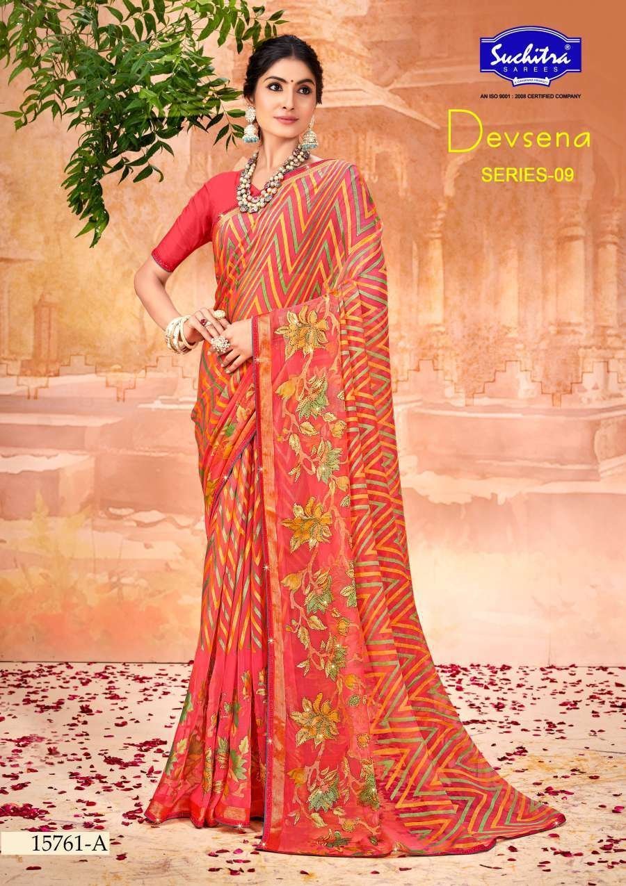 Agarwal Creation Fashions Pvt. Ltd. is a leading company in the saree industry, based in Pune, Maharashtra, since 1984. We are manufacturers, exporters, and traders of a fantastic range of designer sarees, fancy sarees, printed sarees, bridal sarees, Bollywood sarees, and ladies kurtis. Our collection is known for its premium quality, beautiful designs, and adherence to global standards. We work with reliable vendors who have a reputation in the market, innovative designs, and are reliable. Among our many beautiful pieces, the Suchitra Devsena 09 Saree is one that best represents the perfect blend of tradition and modern craftsmanship. Working under the guidance of Rupali Aggarwal, we have set a benchmark in the industry, consistently providing sarees like the Suchitra Devsena 09 Saree, which are cherished for their attractive look, smooth finish, and vibrant colors. We make sure that each saree, such as the Suchitra Devsena 09 Saree, reaches the customers in pristine condition, ready to take any event to the next level.