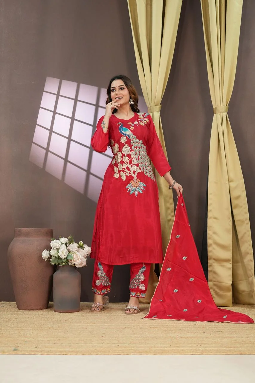 Women’s Red Designer Embroidered Kurta Set with Dupatta
